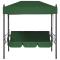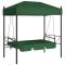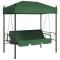 Balancelle de jardin avec auvent vert acierCe banc balançoire de jardin est parfait pour se rencontrer entre amis ou profiter de l'été en famille. Fonction 2 en 1 : cette balancelle sert à la fois de chaise spacieuse pour 2-3 personnes et de lit pratique lorsqu'il est déplié. Avec auvent : cette balancelle est livrée avec un auvent en polyester qui peut vous protéger entièrement des rayons UV et de la pluie fine lorsque vous vous asseyez dans la balancelle. Confortable : le siège de la balançoire de jardin est doté de coussins d'assise doux et confortables avec une housse en polyester et un rembourrage en fibres. Il est doté d'un dossier légèrement incliné et d'accoudoirs confortables, assurant une expérience confortable. Stable et durable : la structure de la balancelle est constituée d'un cadre en acier enduit de poudre, qui garantit une résistance à la corrosion et est robuste et durable. Multifonctionnelle : cette balancelle est parfaite pour les loisirs à la maison. Que vous vous détendiez dans votre jardin, sur votre terrasse ou sur votre balcon, vous pouvez vous asseoir ou vous allonger et profiter de votre temps libre en plein air. Maximum 110 kg par siège. Soyez conscient du risque de feux ouverts et d'autres sources de forte chaleur à proximité du produit.