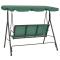 Balancelle de jardin vert 170 cm textilène et acierAsseyez-vous et profitez d'un moment relaxant dans votre jardin, sur votre terrasse ou tout autre espace extérieur sur cette balancelle de jardin. Matériau durable : le tissu en textilène permet à l'air de circuler librement à travers lui tout en étant résistant aux rayons UV. Le textilène est donc idéal pour les temps chauds. En tant que matériau durable et solide, il est très résistant aux déchirures, aux perforations et aux moisissures.Cadre robuste et stable : le cadre de la balancelle de jardin est fabriqué en acier enduit de poudre. L'acier est un matériau exceptionnellement dur et solide. Il offre robustesse et stabilité. Le revêtement en poudre de l'acier crée une couche protectrice contre l'usure.Conception de balancement : vous pouvez vous balancer doucement d'avant en arrière sur cette balancelle pour vous détendre pendant vos loisirs.Fonction d'auvent : la balancelle est équipée d'un auvent en polyester pour vous protéger des rayons directs du soleil lorsque vous lisez ou vous détendez les jours d'été.Assise confortable : le dossier et l'assise de la balancelle de jardin offrent un confort d'assise supplémentaire. Bon à savoir :Pour faciliter au maximum le montage, chaque produit est livré avec des instructions. Maximum 110 kg par siège.
