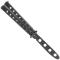 Longueur totale (mm) : 221 Longueur de la lame (mm) : 85 Largeur de Lame : 16 Epaisseur de la lame (mm) : 2 Matériau de la lame : 440-C Matériau du manche : Inox Système : Balisong Poids (gr) : 130 Pays d'origine : Chine