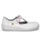 Les ballerines de sécurité pour femme avec talon compensé et boucle de serrage élastiquée pour un bon maintien du pied.