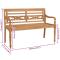 Banc Batavia 120 cm TeckCe banc Batavia est confortable et élégant et donnera une apparence simplement étonnante à votre jardin ou patio. Fabriquée en bois dur de teck extrêmement durable, cette pièce de meuble en teck a été chevronnée, séchée au four puis finement poncée pour lui donner un aspect très lisse. Le bois de teck est connu pour sa résistance exceptionnelle aux intempéries, ce qui le rend bien plus adapté aux meubles de jardin que tout autre type de bois. Le bois de teck est le choix idéal si vous souhaitez acheter une pièce de meubles de jardin durable. Grâce à sa surface finement poncée, cette banquette 2 places est résistante aux intempéries et facile à nettoyer. Il ajoutera une touche de charme rustique à votre jardin et est parfait pour vous détendre en plein air avec vos amis ou votre famille. L'assemblage est facile. Maximum 110 kg par siège. Soyez conscient du risque de feux ouverts et d'autres sources de forte chaleur à proximité du produit. GPSR