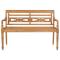 Banc Batavia avec coussin beige 120 cm Bois de teck massifCe banc Batavia en bois confortable et élégant ajoutera une touche de charme rustique à votre jardin ou terrasse. Fabriquée en bois dur de teck extrêmement durable, cette pièce de meuble en teck a été chevronnée, séchée au four puis finement poncée pour lui donner un aspect très lisse. Le bois de teck est connu pour sa résistance exceptionnelle aux intempéries, ce qui le rend bien plus adapté aux meubles de jardin que tout autre type de bois. Le bois de teck est le choix idéal si vous souhaitez acheter une pièce de meubles de jardin durable. Grâce à la surface poncée, le banc de jardin est résistant aux intempéries et facile à nettoyer. Il est également très approprié pour vous détendre ou dîner avec vos amis ou votre famille. Le coussin inclus est pratique et a une fonction décorative. Maximum 110 kg par siège. Soyez conscient du risque de feu ouvert et d'autres sources de forte chaleur à proximité de l'appareil. ,