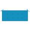 Banc Batavia avec coussin bleu 120 cm Bois de teck massifCe banc Batavia en bois confortable et élégant ajoutera une touche de charme rustique à votre jardin ou terrasse. Fabriquée en bois dur de teck extrêmement durable, cette pièce de meuble en teck a été chevronnée, séchée au four puis finement poncée pour lui donner un aspect très lisse. Le bois de teck est connu pour sa résistance exceptionnelle aux intempéries, ce qui le rend bien plus adapté aux meubles de jardin que tout autre type de bois. Le bois de teck est le choix idéal si vous souhaitez acheter une pièce de meubles de jardin durable. Grâce à la surface poncée, le banc de jardin est résistant aux intempéries et facile à nettoyer. Il est également très approprié pour vous détendre ou dîner avec vos amis ou votre famille. Le coussin inclus est pratique et a une fonction décorative. Maximum 110 kg par siège. Soyez conscient du risque de feu ouvert et d'autres sources de forte chaleur à proximité de l'appareil.