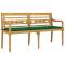 Banc Batavia avec coussin vert 150 cm Bois de teck massifAjoutez une touche d'élégance à votre espace de vie extérieur avec ce banc Batavia en bois avec un coussin ! Bois de teck naturel : le bois de teck massif est un matériau naturel magnifique. Il a été chevronné, séché au four, puis sablé finement pour lui donner une apparence très lisse. Le bois de teck est connu pour sa résistance exceptionnelle et sa résistance aux intempéries. Tissu pratique : le tissu présente un aspect simple et épuré, et il est respirant et durable. Expérience d'assise confortable : le banc comprend des accoudoirs et un dossier, avec le coussin inclus, offrant une expérience d'assise confortable. Design élégant : le siège magnifiquement sculpté ajoutera une touche de charme rustique à votre jardin et convient parfaitement pour vous détendre à l'extérieur avec vos amis et votre famille. Remarque : Chaque produit est livré avec un manuel de montage dans la boîte pour un montage facile. Afin de prolonger la durée de vie de votre mobilier d'extérieur, nous vous recommandons de le protéger avec une housse imperméable. Maximum 110 kg par siège. Soyez conscient du risque de feu ouvert et d'autres sources de forte chaleur à proximité de l'appareil.
