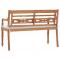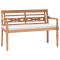 Banc Batavia avec coussins 120 cm TeckCe banc Batavia est confortable et élégant et donnera une apparence simplement étonnante à votre jardin ou patio. Fabriquée en bois dur de teck extrêmement durable, cette pièce de meuble en teck a été chevronnée, séchée au four puis finement poncée pour lui donner un aspect très lisse. Le bois de teck est connu pour sa résistance exceptionnelle aux intempéries, ce qui le rend bien plus adapté aux meubles de jardin que tout autre type de bois. Le bois de teck est le choix idéal si vous souhaitez acheter une pièce de meubles de jardin durable. Le banc a subi une finition à l'huile pour faire ressortir la couleur chaude du bois. Il nécessite très peu d'entretien et de soins. Grâce à sa surface finement sablée, ce banc à 2 places est résistant aux intempéries et facile à nettoyer. Il ajoutera une touche de charme rustique à votre jardin et convient parfaitement à la détente en plein air avec vos amis ou votre famille. L'assemblage est facile. Maximum 110 kg par siège. Soyez conscient du risque de feux ouverts et d'autres sources de forte chaleur à proximité du produit.