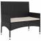 Banc de Jardin à 2 Places avec Coussins Noir Résine TresséeProfitez d'un moment agréable dans votre espace extérieur avec ce banc à 2 places ! C'est un complément parfait à votre jardin et à votre terrasse, créant une impression durable ! Matériau haut de gamme : la résine tressée est un matériau de résistance exceptionnelle et durable dans différentes conditions météorologiques.Cadre robuste : le cadre en acier enduit de poudre assure la robustesse et la stabilité du siège.Coussins moelleux : les coussins épais et amovibles du salon de jardin sont inclus pour offrir le plus grand confort d'assise.Accoudoirs et dossier confortables : vos bras et votre dos peuvent se reposer confortablement grâce aux accoudoirs et au dossier. Bon à savoir :Pour faciliter au maximum le montage, chaque produit est livré avec des instructions. Remarque :Pour que vos meubles d'extérieur restent beaux, nous vous recommandons de les protéger avec une housse imperméable.