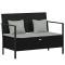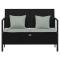Banc de Jardin à 2 Places avec Coussins Noir Résine TresséeProfitez d'un moment agréable dans votre espace extérieur avec ce banc de jardin à 2 places ! C'est un complément parfait à votre jardin et à votre terrasse, créant une impression durable ! Matériau durable : la résine tressée, également connue sous le nom de rotin poly, résiste aux intempéries et est facile à nettoyer. Elle reste belle à l'extérieur pendant une longue période. Elle est plus économique que d'autres matériaux, tout en offrant une excellente qualité, une commodité et un aspect esthétique.Cadre robuste et stable : le cadre en acier rend le siège de jardin robuste et stable pour une utilisation quotidienne à l'extérieur.Grand espace de rangement : le grand compartiment de rangement sous le siège offre suffisamment d'espace pour garder divers articles ménagers bien organisés et à portée de main.Assise confortable : le banc d'extérieur est conçu avec un dossier et des accoudoirs pour vous offrir une expérience d'assise confortable.Coussins souples : les coussins bien rembourrés offrent du confort pendant votre temps d'assise. Remarque :Pour que vos meubles d'extérieur restent beaux, nous vous recommandons de les protéger avec une housse imperméable. Maximum 110 kg par siège. Soyez conscient du risque de feux ouverts et d'autres sources de forte chaleur à proximité du produit.