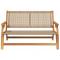 Banc de Jardin Beige 122x76x73.5 cm Bois Acacia MassifCe banc de jardin combine un charme rustique avec un confort moderne, te permettant de te relaxer dehors avec style. Le joli dessus en rotin beige et le bois d'acacia massif en font un super ajout à des patios, jardins ou balcons, offrant suffisamment de confort pour deux personnes avec un bon appui pour les bras. Matériau de Haute Qualité : Ce banc est fait en bois d'acacia massif, connu pour sa durabilité et son aspect sympa, garantissant qu'il peut supporter les conditions extérieures. Look Élégant : Avec un design rustique aux lignes claires et une finition naturelle, ce banc embellit ton espace extérieur et offre un super endroit pour s'asseoir. Taille Générale : Mesurant 122 x 78 x 73 cm, ce banc offre beaucoup d'espace pour deux adultes assis confortablement, parfait pour les rencontres tranquilles. Utilisation Extérieure Unique : Conçu spécialement pour l'extérieur, il donne une ambiance conviviale aux jardins et patios tout en étant assez costaud pour le temps et les intempéries. Entretien Facile : Le dessus du banc est super facile à nettoyer ; il suffit d'un coup de chiffon humide et d'éviter les produits chimiques agressifs pour le garder en bon état.