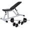 Le banc de musculation est livré avec un ensemble d'haltères et de poids.