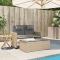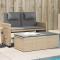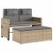 Banc inclinable de jardin avec coussins beige résine tresséeCe banc de jardin 2 en 1, qui sert à la fois de causeuse d'extérieur et de canapé-lit, constitue un ajout pratique et attrayant à votre espace de vie extérieur. Matériau durable : la résine tressée, également connue sous le nom de poly rotin, est un matériau synthétique solide et nécessitant peu d'entretien qui ressemble au rotin naturel. Il est léger, facile à nettoyer et couramment utilisé pour les meubles d'extérieur en raison de sa durabilité et de ses propriétés de résistance aux intempéries.Dossier réglable : ce siège de jardin est doté des poignées. Vous pouvez régler le dossier dans n'importe quelle position en tirant sur la poignée et le remettre rapidement dans sa position initiale.Fonctionnalité polyvalente : ce meuble d'extérieur peut être utilisé comme banc à 2 places ou comme canapé-lit. Vous pouvez facilement le transformer en lit en inclinant le dossier et en retirant le tabouret qui se trouve sous la banquette. Les panneaux de support situés derrière les dossiers rendent le lit plus stable.Table d'appoint pratique : ce mobilier d'extérieur comprend des tables d'appoint pliables avec un ressort à gaz sur les accoudoirs, offrant des endroits pratiques pour garder vos essentiels à portée de main. Bon à savoir :Pour que vos meubles d'extérieur restent beaux, nous vous recommandons de les protéger avec une housse imperméable. Maximum 110 kg par siège. Soyez conscient du risque de feux ouverts et d'autres sources de forte chaleur à proximité du produit.