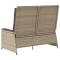 Banc inclinable de jardin avec coussins beige résine tresséeDétendez-vous et profitez de l'extérieur dans cette banc de jardin inclinable confortable ! Matériau durable : la résine tressée, également connue sous le nom de poly rotin, est un matériau synthétique solide et nécessitant peu d'entretien qui ressemble au rotin naturel. Elle est légère, facile à nettoyer et couramment utilisée pour les meubles d'extérieur en raison de sa durabilité et de ses propriétés de résistance aux intempéries. Dossier réglable : ce siège de jardin est doté des poignées. Vous pouvez régler le dossier dans n'importe quelle position en tirant sur la poignée et le remettre rapidement dans sa position initiale. Expérience d'assise confortable : ce mobilier d'extérieur, doté de coussins épais, offre une expérience d'assise confortable. Housse amovible et lavable : ces coussins de siège sont dotés de housses amovibles pour un lavage et un entretien faciles. Cadre robuste et stable : le cadre en acier enduit de poudre assure la solidité et la stabilité du meuble de jardin pour une utilisation quotidienne à l'extérieur. Bon à savoir : Pour que vos meubles d'extérieur restent beaux, nous vous recommandons de les protéger avec une housse imperméable. Maximum 110 kg par siège. Soyez conscient du risque de feux ouverts et d'autres sources de forte chaleur à proximité du produit.