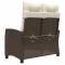 Banc inclinable de jardin avec coussins marron résine tresséeDétendez-vous et profitez de l'extérieur dans cette banc de jardin inclinable confortable ! Matériau durable : la résine tressée, également connue sous le nom de poly rotin, est un matériau synthétique solide et nécessitant peu d'entretien qui ressemble au rotin naturel. Il est léger, facile à nettoyer et couramment utilisé pour les meubles d'extérieur en raison de sa durabilité et de ses propriétés de résistance aux intempéries. Dossier réglable : ce siège de jardin est doté des poignées. Vous pouvez régler le dossier dans n'importe quelle position en tirant sur la poignée et le remettre rapidement dans sa position initiale. Expérience d'assise confortable : ce mobilier d'extérieur, doté de coussins épais, offre une expérience d'assise confortable. Housse amovible et lavable : ces coussins de siège sont dotés de housses amovibles pour un lavage et un entretien faciles. Les coussins de dossier ont un rabat à l'arrière pour une fixation facile aux dossiers. Cadre robuste et stable : le cadre en acier enduit de poudre assure la solidité et la stabilité du meuble de jardin pour une utilisation quotidienne à l'extérieur. Bon à savoir : Pour que vos meubles d'extérieur restent beaux, nous vous recommandons de les protéger avec une housse imperméable. Maximum 110 kg par siège.