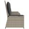 Banc inclinable de jardin et coussins gris clair résine tresséeDétendez-vous et profitez de l'extérieur dans cette banc de jardin inclinable confortable ! Matériau durable : la résine tressée, également connue sous le nom de poly rotin, est un matériau synthétique solide et nécessitant peu d'entretien qui ressemble au rotin naturel. Elle est légère, facile à nettoyer et couramment utilisée pour les meubles d'extérieur en raison de sa durabilité et de ses propriétés de résistance aux intempéries. Dossier réglable : ce siège de jardin est doté des poignées. Vous pouvez régler le dossier dans n'importe quelle position en tirant sur la poignée et le remettre rapidement dans sa position initiale. Expérience d'assise confortable : ce mobilier d'extérieur, doté de coussins épais, offre une expérience d'assise confortable. Housse amovible et lavable : ces coussins de siège sont dotés de housses amovibles pour un lavage et un entretien faciles. Cadre robuste et stable : le cadre en acier enduit de poudre assure la solidité et la stabilité du meuble de jardin pour une utilisation quotidienne à l'extérieur. Bon à savoir : Pour que vos meubles d'extérieur restent beaux, nous vous recommandons de les protéger avec une housse imperméable. Maximum 110 kg par siège. Soyez conscient du risque de feux ouverts et d'autres sources de forte chaleur à proximité du produit.