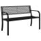 Banc de jardin 119 cm noir acierCe banc de jardin, au design sobre et intemporel, ajoutera une touche de style à votre jardin ou à votre terrasse. Matériau durable : l'acier enduit de poudre est un matériau exceptionnellement dur et solide. Il offre robustesse et stabilité. Le revêtement en poudre de la surface de l'acier crée une couche protectrice contre la rouille, la corrosion et l'usure. Expérience d'assise confortable : doté d'un dossier ajouré et d'accoudoirs, le siège de jardin vous offre un confort optimal. Maximum 110 kg par siège. ,