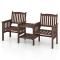 Caractéristiques techniques : Couleur : Café Matériaux : Bois de Sapin Dimensions hors tout : 165 x 60 x 88 cm Dimensions du Siège : 52 x 48 cm Hauteur du Siège : 38 cm Diamètre du Trou pour Parasol : 5 cm Poids Net : 13 kg Capacité de Charge de Chaque Étagère : 30 kg Capacité de Charge de Chaque Chaise : 150 kg