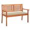 Banc de jardin 2 places avec coussin 120 cm Bois d'eucalyptusCe banc en bois d'eucalyptus massif, avec coussin, ajoute une touche naturelle à votre espace de vie extérieur ! Il est conçu pour être le point de mire de votre jardin, terrasse ou patio. Ce banc de jardin est fait de bois d'eucalyptus massif, ce qui le rend robuste et stable. La forme ergonomique du banc en bois offre un confort d'assise optimal. La surface à finition à l'huile est facile à nettoyer avec un chiffon humide. De plus, le coussin ajoute du confort supplémentaire. Chaque coussin comprend deux jeux de cordes pour le fixer fermement sur votre banc d'extérieur. Maximum 110 kg par siège. ,