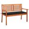 Banc de jardin 2 places avec coussin 120 cm Bois d'eucalyptusCe banc en bois d'eucalyptus massif, avec coussin, ajoute une touche naturelle à votre espace de vie extérieur ! Il est conçu pour être le point de mire de votre jardin, terrasse ou patio. Ce banc de jardin est fait de bois d'eucalyptus massif, ce qui le rend robuste et stable. La forme ergonomique du banc en bois offre un confort d'assise optimal. La surface à finition à l'huile est facile à nettoyer avec un chiffon humide. De plus, le coussin ajoute du confort supplémentaire. Chaque coussin comprend deux jeux de cordes pour le fixer fermement sur votre banc d'extérieur. Maximum 110 kg par siège. ,