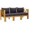 Banc de jardin 3 places et coussins 179 cm Bois d'acacia massifAsseyez-vous et détendez-vous sur ce banc en bois attrayant, qui convient aux espaces de vie intérieurs et extérieurs ! Ce banc est fabriqué en bois d'acacia massif, ce qui le rend stable et durable. Grâce à la surface à finition à l'huile, il est facile à nettoyer avec un chiffon humide. Ce siège multifonctionnel peut également être retiré pour être utilisé comme lit de repos. Vous pouvez profiter de votre temps de repos lorsque vous vous asseyez sur le banc avec une tasse de café. De plus, avec des coussins épais, le lit de jour vous apporte une expérience d'assise confortable. Remarque : afin de prolonger la durée de vie des meubles d'extérieur, nous vous recommandons de les protéger avec une housse imperméable. Maximum 110 kg par siège. Soyez conscient du risque de feux ouverts et d'autres sources de forte chaleur à proximité du produit. ,
