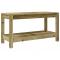 Banc de jardin 82,5x35x45 cm bois de pin imprégnéCe banc de jardin en bois est parfait pour une utilisation à l'extérieur et est conçu pour être le point central de votre jardin, terrasse ou patio, etc. Bois imprégné : le bois de pin massif est un matériau naturel magnifique. Le bois de pin a un grain droit et les noeuds lui confèrent un aspect rustique caractéristique. L'imprégnation est un processus de conservation réalisé à l'aide d'autoclaves. Le traitement sous pression augmente la résistance à la pourriture et aux intempéries. Design à lattes : le design à lattes du banc de parc évite l'accumulation d'eau, gardant le siège au sec et évitant tout pourrissement inutile. Nombreuses applications : le banc d'extérieur est idéal pour le porche avant, le patio, l'arrière-cour, la pelouse, le jardin, etc. Étagère pratique : ce banc de patio est doté d'une étagère, ce qui ajoute un espace de rangement pour y mettre certains objets. Bon à savoir : Pour que vos meubles d'extérieur restent beaux, nous vous recommandons de les protéger avec une housse imperméable. Maximum 110 kg par siège.