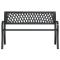 Banc de jardin Noir 120 cm AcierCe banc de jardin, au design sobre et intemporel, ajoutera une touche de style à votre jardin ou à votre terrasse. Matériau durable : l'acier enduit de poudre est un matériau exceptionnellement dur et solide. Il offre robustesse et stabilité. Le revêtement en poudre de la surface de l'acier crée une couche protectrice contre la rouille, la corrosion et l'usure. Expérience d'assise confortable : doté d'un dossier à motif en treillis et d'accoudoirs, le siège de jardin vous offre le plus grand confort. Maximum 110 kg par siège. ,