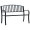 Banc de jardin Noir 120 cm AcierCe banc de jardin est un véritable accroche-regard et donnera une sensation agréable à tout jardin ou espace extérieur. Matériau durable : ce mobilier de jardin est fabriqué en acier enduit de poudre, un matériau durable pour une utilisation à l'extérieur. Cadre en acier stable : le cadre en acier du banc de jardin assure robustesse et stabilité. Design confortable : le siège et le dossier offrent un excellent soutien et un confort optimal. Sièges pratiques : ce mobilier extérieur simple mais élégant offre un endroit idéal pour vous détendre ! Remarque : Afin de prolonger la durée de vie de votre mobilier d'extérieur, nous vous recommandons de le protéger avec une housse imperméable. Chaque produit est livré avec un manuel de montage dans la boîte pour un montage facile. Maximum 110 kg par siège. ,