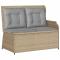 Banc de jardin avec coussin Beige et gris polyrotinCe banc de jardin inclinable est un vrai atout pour n'importe quel jardin ou terrasse, alliant style moderne et praticité. Avec ses lignes épurées et son style minimaliste, il s'intègre facilement dans tous les environnements extérieurs, offrant un coin idéal pour se relaxer ou partager des moments entre amis. Matériaux durables : Conçu en poly rattan, ce banc résiste bien aux intempéries, parfait pour l'extérieur. Le poly rattan ne fait pas que croquer du style, il promet aussi une longévité face aux éléments. Cadre solide : Le banc est soutenu par une structure robuste en acier recouverte de poudre, garantissant stabilité et solidité. Cette construction est faite pour durer à travers les saisons. Confort amélioré : Avec son coussin d'extérieur, le banc assure un bon confort, parfait pour les moments de détente prolongés. Le tissu du coussin est conçu pour résister aux intempéries, faisant de ce banc un choix idéal pour ton mobilier extérieur. Design simplifié : Ce banc respire le design moderne avec son look épuré et minimaliste, sa forme rectangulaire et son dos net qui renforcent son charme et son utilité. Facile à entretenir : Garde ton banc en bon état sans chichis. Il suffit de passer un coup de chiffon sec pour enlever la poussière, et pense à le ranger quand le temps se gâte pour garder sa finition impeccable. Maximum 110 kg par siège. Soyez conscient du risque de feux ouverts et d'autres sources de forte chaleur à proximité du produit.