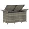 Banc de jardin avec coussin gris 116x46x57 cm résine tresséeCe banc de jardin tendance avec coussin, combinant à la fois style et fonctionnalité, est sûrement destiné à être la pièce maîtresse de votre jardin, terrasse et de tout autre espace de vie. Matériau durable : la résine tressée, également connue sous le nom de rotin poly, résiste aux intempéries et est facile à nettoyer. Elle reste belle à l'extérieur pendant une longue période. Elle est plus économique que d'autres matériaux, tout en offrant une excellente qualité, une commodité et un aspect esthétique. Grand espace de rangement : le siège de jardin offre un grand espace de rangement à l'intérieur pour garder vos multiples objets bien organisés et à portée de main. Le revêtement en PVC résistant à l'eau garde le contenu au sec. Le crochet permet de maintenir le couvercle lors de l'ouverture. Cadre robuste et stable : le cadre en acier enduit de poudre rend le banc de parc robuste et stable pour une utilisation quotidienne en extérieur. Assise confortable : le coussin de siège bien rembourré offre un confort ultime pendant votre temps d'assise. Applications larges : le banc d'extérieur, avec son design remarquable, crée un aspect général agréable qui s'intègre sans effort dans n'importe quel décor. Remarque : Pour que vos meubles d'extérieur restent beaux, nous vous recommandons de les protéger avec une housse imperméable.