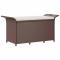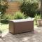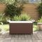 Banc de jardin avec coussin marron 116x46x57 cm résine tresséeCe banc de jardin tendance avec coussin, combinant à la fois style et fonctionnalité, est sûrement destiné à être la pièce maîtresse de votre jardin, terrasse et de tout autre espace de vie. Matériau durable : la résine tressée, également connue sous le nom de rotin poly, résiste aux intempéries et est facile à nettoyer. Elle reste belle à l'extérieur pendant une longue période. Elle est plus économique que d'autres matériaux, tout en offrant une excellente qualité, une commodité et un aspect esthétique.Grand espace de rangement : le siège de jardin offre un grand espace de rangement à l'intérieur pour garder vos multiples objets bien organisés et à portée de main. Le revêtement en PVC résistant à l'eau garde le contenu au sec. Le crochet permet de maintenir le couvercle lors de l'ouverture.Cadre robuste et stable : le cadre en acier enduit de poudre rend le banc de parc robuste et stable pour une utilisation quotidienne en extérieur.Assise confortable : le coussin de siège bien rembourré offre un confort ultime pendant votre temps d'assise.Applications larges : le banc d'extérieur, avec son design remarquable, crée un aspect général agréable qui s'intègre sans effort dans n'importe quel décor. Remarque :Pour que vos meubles d'extérieur restent beaux, nous vous recommandons de les protéger avec une housse imperméable.
