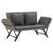 Banc de jardin avec coussins 176 cm Gris Résine tresséeCe lit de bronzage / banc de jardin d'extérieur combine le style et la fonctionnalité et va devenir le point central de votre jardin ou terrasse. Fabriqué en résine tressée résistante aux intempéries, ce banc de jardin est facile à nettoyer, résistant à l'usure et adapté à un usage quotidien. Il est doté d'un cadre en acier robuste, enduit de poudre, ce qui rend ce banc très stable et durable. Il peut être transformé en lit de jour et inversement rapidement et facilement grâce à ses côtés réglables. Le coussin épaississement rembourré offre un confort optimal et un soutien supplémentaire. De plus, grâce à la conception zippée, la housse du coussin est amovible pour un lavage facile. La livraison comprend 1 banc de jardin, 1 coussin de siège et 2 oreillers. Remarque : Nous recommandons de couvrir le banc de jardin par temps pluvieux, neigeux, gelé ou par tout autre temps rigoureux afin de prolonger sa durée de vie. ,