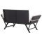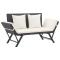 Banc de jardin avec coussins 176 cm Noir Résine tresséeCe lit de bronzage / banc de jardin d'extérieur combine le style et la fonctionnalité et va devenir le point central de votre jardin ou terrasse. Fabriqué en résine tressée résistante aux intempéries, ce banc de jardin est facile à nettoyer, résistant à l'usure et adapté à un usage quotidien. Il est doté d'un cadre en acier robuste, enduit de poudre, ce qui rend ce banc très stable et durable. Il peut être transformé en lit de jour et inversement rapidement et facilement grâce à ses côtés réglables. Le coussin épaississement rembourré offre un confort optimal et un soutien supplémentaire. De plus, grâce à la conception zippée, la housse du coussin est amovible pour un lavage facile. La livraison comprend 1 banc de jardin, 1 coussin de siège et 2 oreillers. Remarque : Nous recommandons de couvrir le banc de jardin par temps pluvieux, neigeux, gelé ou par tout autre temps rigoureux afin de prolonger sa durée de vie.