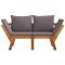 Banc de jardin avec coussins 2 en 1 bois d'acacia massifCe banc de jardin extérieur 2-en-1 est un choix parfait pour vous détendre sur votre porche par une journée ensoleillée ou vous allonger pour observer les étoiles la nuit. Robuste et stable : le bois d'acacia massif est connu pour sa solidité et sa durabilité. Ses couleurs variées et ses grains uniques lui confèrent un aspect attrayant. Sa stabilité et sa résistance aux intempéries en font un matériau idéal pour la fabrication de meubles d'intérieur et d'extérieur.Conception 2 en 1 : le siège de jardin peut être converti d'un banc en un lit de jour et inversement rapidement et facilement grâce aux côtés réglables.Expérience d'assise confortable : ce mobilier d'extérieur, doté de coussins épais, offre une expérience d'assise confortable.Bien ventilé et prévention de l'accumulation d'eau : la conception à lattes favorise une circulation optimale de l'air et empêche efficacement l'accumulation d'eau, assurant ainsi une assise sèche et confortable. Bon à savoir :Pour que vos meubles d'extérieur restent beaux, nous vous recommandons de les protéger avec une housse imperméable.