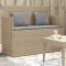 Banc de jardin avec coussins beige résine tresséeCe banc de jardin n'est pas seulement un siège d'extérieur, il est aussi parfaite pour garder vos coussins de meubles d'extérieur, fournitures de jardinage, serviettes de piscine et d'autres articles organisés et facilement accessibles. Matériau durable : la résine tressée, également connue sous le nom de poly rotin, est un matériau synthétique solide et nécessitant peu d'entretien qui ressemble au rotin naturel. Il est léger, facile à nettoyer et couramment utilisé pour les meubles d'extérieur en raison de sa durabilité et de ses propriétés de résistance aux intempéries.Fonction de rangement avec sac résistant à l'eau : le mobilier de jardin dispose d'un espace de rangement sous l'assise, complété par un sac résistant à l'eau pour ranger coussins, jouets et autres objets. Le sac intérieur peut être solidement fixé au mobilier d'extérieur grâce à des attaches auto-agrippantes pour plus de stabilité.Expérience d'assise confortable : ce mobilier d'extérieur, doté d'un coussin épais rembourré, offre une expérience d'assise confortable.Sécurité et facilité d'ouverture et de fermeture : le ressort à gaz facilite l'ouverture du couvercle et l'empêche de claquer ou de coincer les doigts.Housse amovible et lavable : ces coussins de siège sont dotés de housses amovibles pour un lavage et un entretien faciles. Bon à savoir :Pour que vos meubles d'extérieur restent beaux, nous vous recommandons de les protéger avec une housse imperméable. Maximum 110 kg par siège. Soyez conscient du risque de feux ouverts et d'autres sources de forte chaleur à proximité du produit.