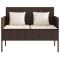 Banc de jardin avec coussins marron résine tresséeCe banc de jardin n'est pas seulement un siège d'extérieur, il est aussi parfaite pour garder vos coussins de meubles d'extérieur, fournitures de jardinage, serviettes de piscine et d'autres articles organisés et facilement accessibles. Matériau durable : la résine tressée, également connue sous le nom de poly rotin, est un matériau synthétique solide et nécessitant peu d'entretien qui ressemble au rotin naturel. Il est léger, facile à nettoyer et couramment utilisé pour les meubles d'extérieur en raison de sa durabilité et de ses propriétés de résistance aux intempéries.Fonction de rangement avec sac résistant à l'eau : le mobilier de jardin dispose d'un espace de rangement sous l'assise, complété par un sac résistant à l'eau pour ranger coussins, jouets et autres objets. Le sac intérieur peut être solidement fixé au mobilier d'extérieur grâce à des attaches auto-agrippantes pour plus de stabilité.Expérience d'assise confortable : ce mobilier d'extérieur, doté d'un coussin épais rembourré, offre une expérience d'assise confortable.Sécurité et facilité d'ouverture et de fermeture : le ressort à gaz facilite l'ouverture du couvercle et l'empêche de claquer ou de coincer les doigts.Housse amovible et lavable : ces coussins de siège sont dotés de housses amovibles pour un lavage et un entretien faciles. Bon à savoir :Pour que vos meubles d'extérieur restent beaux, nous vous recommandons de les protéger avec une housse imperméable. Maximum 110 kg par siège. Soyez conscient du risque de feux ouverts et d'autres sources de forte chaleur à proximité du produit.