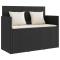 Banc de jardin avec coussins noir résine tresséeCe banc de jardin n'est pas seulement un siège d'extérieur, il est aussi parfaite pour garder vos coussins de meubles d'extérieur, fournitures de jardinage, serviettes de piscine et d'autres articles organisés et facilement accessibles. Matériau durable : la résine tressée, également connue sous le nom de poly rotin, est un matériau synthétique solide et nécessitant peu d'entretien qui ressemble au rotin naturel. Il est léger, facile à nettoyer et couramment utilisé pour les meubles d'extérieur en raison de sa durabilité et de ses propriétés de résistance aux intempéries.Fonction de rangement avec sac résistant à l'eau : le mobilier de jardin dispose d'un espace de rangement sous l'assise, complété par un sac résistant à l'eau pour ranger coussins, jouets et autres objets. Le sac intérieur peut être solidement fixé au mobilier d'extérieur grâce à des attaches auto-agrippantes pour plus de stabilité.Expérience d'assise confortable : ce mobilier d'extérieur, doté d'un coussin épais rembourré, offre une expérience d'assise confortable.Sécurité et facilité d'ouverture et de fermeture : le ressort à gaz facilite l'ouverture du couvercle et l'empêche de claquer ou de coincer les doigts.Housse amovible et lavable : ces coussins de siège sont dotés de housses amovibles pour un lavage et un entretien faciles. Bon à savoir :Pour que vos meubles d'extérieur restent beaux, nous vous recommandons de les protéger avec une housse imperméable. Maximum 110 kg par siège. Soyez conscient du risque de feux ouverts et d'autres sources de forte chaleur à proximité du produit.