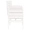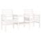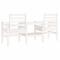 Banc de jardin avec table 2 places blanc bois massif de pinProfitez de soirée romantiques sur le banc de jardin avec une table intégrale pour verre à vin,snacks ou café. Bois de pin massif : le banc de jardin avec table est fabriqué en bois de pin massif pour une robustesse et une stabilité accrues. Le bois de pin solide est un beau matériau naturel. Le bois de pin a un grain droit et les noeuds donnent au matériau son aspect caractéristique et rustique.Expérience d'assise confortable : doté d'accoudoirs et d'un dossier, le banc de jardin avec table vous offre un confort optimal.Table intégrée pratique : la table intégrée et l'étagère inférieure entre les deux sièges sont idéales pour ranger des boissons, des snacks, des magazines et d'autres articles que vous souhaitez avoir à portée de main.Design à lattes : le design à lattes du banc de parc évite l'accumulation d'eau, gardant le siège au sec et évitant tout pourrissement inutile. Bon à savoir :Pour que vos meubles d'extérieur restent beaux, nous vous recommandons de les protéger avec une housse imperméable. Maximum 110 kg par siège.