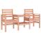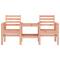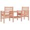 Banc de jardin avec table 2 places bois massif de douglasProfitez de soirée romantiques sur le banc de jardin avec une table intégrale pour verre à vin,snacks ou café. Bois massif de douglas : le banc de jardin avec table est fabriqué en bois massif de douglas pour une robustesse et une stabilité accrues. Le bois de Douglas massif est un bois très durable qui fonctionne bien à l'extérieur. Le bois de Douglas est également assez solide pour l'utiliser avec un minimum de soins, même sous l'influence des intempéries.Expérience d'assise confortable : doté d'accoudoirs et d'un dossier, le banc de jardin avec table vous offre un confort optimal.Table intégrée pratique : la table intégrée et l'étagère inférieure entre les deux sièges sont idéales pour ranger des boissons, des snacks, des magazines et d'autres articles que vous souhaitez avoir à portée de main.Design à lattes : le design à lattes du banc de parc évite l'accumulation d'eau, gardant le siège au sec et évitant tout pourrissement inutile. Bon à savoir :Pour que vos meubles d'extérieur restent beaux, nous vous recommandons de les protéger avec une housse imperméable. Maximum 110 kg par siège.