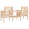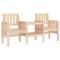 Banc de jardin avec table 2 places bois de pin massifProfitez de soirée romantiques sur le banc de jardin avec une table intégrée pour des verres à vin, des snacks ou du café. Bois de pin massif : le banc de jardin avec table est fabriqué en bois de pin massif pour une robustesse et une stabilité accrues. Le bois de pin solide est un beau matériau naturel. Le bois de pin a un grain droit et les noeuds donnent au matériau son aspect caractéristique et rustique.Expérience d'assise confortable : doté d'accoudoirs et d'un dossier, le banc de jardin avec table vous offre un confort optimal.Table intégrée pratique : la table intégrée et l'étagère inférieure entre les deux sièges sont idéales pour ranger des boissons, des snacks, des magazines et d'autres articles que vous souhaitez avoir à portée de main.Design à lattes : le design à lattes du banc d'extérieur évite l'accumulation de l'eau, gardant le siège au sec et évitant tout pourrissement inutile. Bon à savoir :Pour que vos meubles d'extérieur restent beaux, nous vous recommandons de les protéger avec une housse imperméable. Maximum 110 kg par siège.