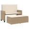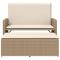Banc de jardin et coussins et repose-pied beige résine tresséeCe banc de jardin 2 en 1, servant à la fois de chaise longue d'extérieur et de canapé-lit, est un supplément pratique et accrocheur à votre espace de vie extérieur. Matériau durable : la résine tressée, également connue sous le nom de poly rotin, est un matériau synthétique solide et nécessitant peu d'entretien qui ressemble au rotin naturel. Il est léger, facile à nettoyer et couramment utilisé pour les meubles d'extérieur en raison de sa durabilité et de ses propriétés de résistance aux intempéries. Fonctionnalité polyvalente : ce meuble d'extérieur peut être utilisé comme banc à 2 places ou comme canapé-lit. Vous pouvez facilement le transformer en lit en inclinant le dossier et en retirant le tabouret qui se trouve sous la banquette. Les panneaux de support situés derrière les dossiers rendent le lit plus stable. Expérience d'assise confortable : ce mobilier d'extérieur, doté de coussins épais, offre une expérience d'assise confortable. Pouf polyvalent : le tabouret est polyvalent, servant de repose-pieds confortable lorsque vous vous prélassez sur le canapé ou de siège supplémentaire dans votre jardin. Rangement compact : ce repose-pied peut être soigneusement rangé sous le siège, ce qui permet d'économiser de l'espace. Bon à savoir :Pour que vos meubles d'extérieur restent beaux, nous vous recommandons de les protéger avec une housse imperméable. Maximum 110 kg par siège. Soyez conscient du risque de feux ouverts et d'autres sources de forte chaleur à proximité du produit.