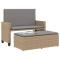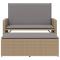 Banc de jardin et coussins et repose-pied beige résine tresséeCe banc de jardin 2 en 1, servant à la fois de chaise longue d'extérieur et de canapé-lit, est un supplément pratique et accrocheur à votre espace de vie extérieur. Matériau durable : la résine tressée, également connue sous le nom de poly rotin, est un matériau synthétique solide et nécessitant peu d'entretien qui ressemble au rotin naturel. Il est léger, facile à nettoyer et couramment utilisé pour les meubles d'extérieur en raison de sa durabilité et de ses propriétés de résistance aux intempéries. Fonctionnalité polyvalente : ce meuble d'extérieur peut être utilisé comme banc à 2 places ou comme canapé-lit. Vous pouvez facilement le transformer en lit en inclinant le dossier et en retirant le tabouret qui se trouve sous la banquette. Les panneaux de support situés derrière les dossiers rendent le lit plus stable. Expérience d'assise confortable : ce mobilier d'extérieur, doté de coussins épais, offre une expérience d'assise confortable. Pouf polyvalent : le tabouret est polyvalent, servant de repose-pieds confortable lorsque vous vous prélassez sur le canapé ou de siège supplémentaire dans votre jardin. Rangement compact : ce repose-pied peut être soigneusement rangé sous le siège, ce qui permet d'économiser de l'espace. Bon à savoir :Pour que vos meubles d'extérieur restent beaux, nous vous recommandons de les protéger avec une housse imperméable. Maximum 110 kg par siège. Soyez conscient du risque de feux ouverts et d'autres sources de forte chaleur à proximité du produit.
