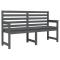 Banc de jardin gris 159,5x48x91,5 cm bois massif de pinCe banc de jardin classique en bois est parfait pour une utilisation à l'extérieur et est conçu pour être le point central de votre jardin, terrasse ou patio, etc. Bois de pin massif : le siège de jardin est fabriqué en bois de pin massif. Le bois de pin massif est un matériau naturel magnifique. Le bois de pin a un grain droit et les noeuds donnent au matériau son aspect caractéristique et rustique.Cadre robuste et stable : le cadre en bois assure robustesse et stabilité. Dossier et accoudoirs pratiques : le banc d'extérieur est doté d'accoudoirs et d'un dossier pour que vous puissiez vous détendre confortablement. Siège à lattes : les lattes de bois fixes du banc de parc permettent à l'eau et à tout autre élément de s'écouler sur le sol, ce qui permet de garder le banc sec pour s'y asseoir. Nombreuses applications : le banc de terrasse, au design simple et intemporel, convient aux balcons, porches, jardins, patios, etc. Bon à savoir :Pour faciliter au maximum le montage, chaque produit est livré avec des instructions. Remarque :Pour que vos meubles d'extérieur restent beaux, nous vous recommandons de les protéger avec une housse imperméable. Maximum 110 kg par siège.
