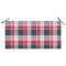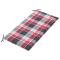 Le coussin présente un motif à carreaux rouge