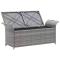 Banc de rangement avec coussin gris 138 cm résine tresséeCe banc de rangement en résine tressée élégant mais très confortable deviendra le point central de votre jardin ! Matériau durable : la résine tressée, également connue sous le nom de poly rotin, est un matériau synthétique solide et nécessitant peu d'entretien qui ressemble au rotin naturel. Elle est légère, facile à nettoyer et couramment utilisée pour les meubles d'extérieur en raison de sa durabilité et de ses propriétés de résistance aux intempéries. Grand espace de rangement : le banc est conçu avec un grand espace de rangement à l'intérieur pour garder vos multiples articles bien organisés et à portée de main. Design pratique : ce banc en résine tressée offre une flexibilité totale et peut être facilement déplacé pour s'adapter à n'importe quel environnement. Expérience de siège confortable : des coussins et des oreillers supplémentaires sont inclus pour votre confort. Bon à savoir : Pour que vos meubles d'extérieur restent beaux, nous vous recommandons de les protéger avec une housse imperméable.