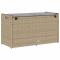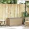 Banc de rangement extérieur coussin beige 100 cm résine tresséeCombinant assise et rangement, ce banc de rangement extérieur deviendra le point central de votre espace extérieur ! Matériau durable : la résine tressée, également connue sous le nom de poly rotin, est un matériau synthétique solide et nécessitant peu d'entretien qui ressemble au rotin naturel. Elle est légère, facile à nettoyer et couramment utilisée pour les meubles d'extérieur en raison de sa durabilité et de ses propriétés de résistance aux intempéries. Fonction de rangement : le meuble de jardin dispose d'un espace de rangement en dessous, équipé d'un sac résistant à l'eau pour ranger les coussins, les jouets et d'autres objets. Le sac intérieur peut être solidement fixé au siège à l'aide de bandes auto-agrippantes, ce qui garantit la stabilité et empêche tout mouvement. Sécurité et facilité d'ouverture et de fermeture : le ressort à gaz facilite l'ouverture du couvercle et l'empêche de claquer ou de coincer les doigts. Facile à déplacer : conçu avec des poignées intégrées pour faciliter le déplacement du banc et offrir plus de commodité. Expérience d'assise confortable : ce banc de rangement de jardin, doté d'un coussin épais et rembourré, offre une expérience d'assise confortable. Bon à savoir : Pour que vos meubles d'extérieur restent beaux, nous vous recommandons de les protéger avec une housse imperméable.