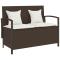 Banc de rangement de jardin avec coussin marron polyrotinCe banc de rangement de jardin n'est pas seulement un siège d'extérieur, il est aussi parfaite pour garder vos coussins de meubles d'extérieur, fournitures de jardinage, serviettes de piscine et d'autres articles organisés et facilement accessibles. Matériau durable : la résine tressée, également connue sous le nom de poly rotin, est un matériau synthétique solide et nécessitant peu d'entretien qui ressemble au rotin naturel. Elle est légère, facile à nettoyer et couramment utilisée pour les meubles d'extérieur en raison de sa durabilité et de ses propriétés de résistance aux intempéries.Fonction de rangement : le siège de jardin dispose d'un espace de rangement en dessous, équipé d'un sac résistant à l'eau pour ranger les coussins, les jouets et d'autres objets. Le sac intérieur peut être solidement fixé au siège à l'aide de bandes auto-agrippantes, ce qui garantit la stabilité et empêche tout mouvement.Sécurité et facilité d'ouverture et de fermeture : le ressort à gaz facilite l'ouverture du couvercle et l'empêche de claquer ou de coincer les doigts.Expérience d'assise confortable : ce mobilier d'extérieur, doté de coussins épais, offre une expérience d'assise confortable.Housse amovible et lavable : ces coussins de siège sont dotés de housses amovibles pour un lavage et un entretien faciles. Bon à savoir :Pour que vos meubles d'extérieur restent beaux, nous vous recommandons de les protéger avec une housse imperméable.