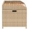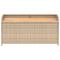 Banc de rangement mélange beige résine tressée et bois d'acaciaCe banc de rangement n'est pas seulement un siège d'extérieur, il est aussi parfaite pour garder vos coussins de meubles d'extérieur, fournitures de jardinage, serviettes de piscine et d'autres articles organisés et facilement accessibles. Matériau durable : la résine tressée, également connue sous le nom de poly rotin, est un matériau synthétique solide et nécessitant peu d'entretien qui ressemble au rotin naturel. Il est léger, facile à nettoyer et couramment utilisé pour les meubles d'extérieur en raison de sa durabilité et de ses propriétés de résistance aux intempéries.Fonction de rangement avec sac résistant à l'eau : chaque siège de jardin dispose d'un espace de rangement sous l'assise, complété par un sac résistant à l'eau pour ranger les coussins, les jouets et d'autres objets.Fonctionnalité polyvalente : ce meuble d'extérieur sert à la fois de boîte de rangement de jardin et de banc.Sécurité et facilité d'ouverture et de fermeture : le ressort à gaz facilite l'ouverture du couvercle et l'empêche de claquer ou de coincer les doigts. Bon à savoir :Pour que vos meubles d'extérieur restent beaux, nous vous recommandons de les protéger avec une housse imperméable. Maximum 110 kg par siège.