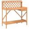 Banc de rempotage avec treillis marron bois massif de sapinCe banc de rempotage est parfait pour organiser et présenter vos plantes en pot à la maison, dans un jardin, sur un patio ou sur une terrasse. Robuste et durable : cette table de rempotage est fabriquée en bois de sapin massif, ce qui la rend durable. Espace de rangement polyvalent : l'établi de rempotage, doté d'étagères ouvertes, d'un rail supérieur, de crochets métalliques sur les côtés et d'un tiroir, offre suffisamment d'espace pour ranger les articles connexes tels que les petits outils de jardinage, la terre, les engrais, etc.Décorations : le banc de rempotage est équipé d'un treillis qui offre un espace de croissance vers le haut pour les plantes grimpantes. Le treillis en losange convient quant à lui pour suspendre des plantes en panier ou des décorations pour embellir votre jardin.Ventilé : cette étagère inférieure à lattes permet à l'eau de s'écouler, ce qui la rend imputrescible et lui confère une longue durée de vie.Applications multiples : le banc de jardinage peut non seulement apporter un sentiment de nature à votre espace, mais peut également être un complément parfait à votre cour, jardin, serre, etc. Bon à savoir :Pour que vos meubles d'extérieur restent beaux, nous vous recommandons de les protéger avec une housse imperméable. Attention :Pour éviter qu'il ne bascule, ce produit doit être utilisé avec le dispositif de fixation murale fourni.