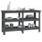 Banc de travail Gris 142,5x50x80 cm Bois de pin massifCe banc de travail en bois est un supplément pratique à votre espace de vie. Bois massif de pin : le bois de pin massif est un matériau naturel magnifique. Le bois de pin a un grain droit et les noeuds donnent au matériau son aspect caractéristique et rustique.Grand espace de rangement : cette table de travail avec étagères offre un grand espace de rangement pour garder vos articles bien organisés et à portée de main.Cadre robuste : le cadre en bois assure robustesse et stabilité. Attention :Pour éviter qu'il ne bascule, ce produit doit être utilisé avec le dispositif de fixation murale (non fourni).Remarque :Chaque produit est livré avec un manuel de montage dans la boîte pour un montage facile.