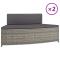 Bancs de spa avec coussins lot de 2 gris résine tresséeProfitez d'un moment agréable dans votre espace extérieur grâce à ces bancs de spa ! Matériau durable : la résine tressée, également connue sous le nom de rotin poly, résiste aux intempéries et est facile à nettoyer. Elle reste belle à l'extérieur pendant une longue période. Elle est plus économique que d'autres matériaux, tout en offrant une excellente qualité, une commodité et un aspect esthétique.Cadre robuste : le cadre en acier enduit de poudre assure la robustesse et la stabilité de la banquette de spa.Coussin doux et facile à nettoyer : le coussin épais du banc de spa extérieur offre un confort ultime. Grâce à la fermeture éclair, la housse de coussin en tissu est amovible et facile à laver.Expérience confortable : le dossier du banc de spa de jardin vous offre une expérience d'assise confortable. Remarque :Pour que vos meubles d'extérieur restent beaux, nous vous recommandons de les protéger avec une housse imperméable. Maximum 110 kg par siège. Soyez conscient du risque de feux ouverts et d'autres sources de forte chaleur à proximité du produit.