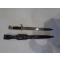 Baönnette de sortie avec son gousset, plaquette en bakélite noire, Allemagne WW.2, longueur totale sans le fourreau 37 cm, longueur de la lame 24,9 cm. Très bon état. Bon achat à tous et merci de regarder mes autres objets.