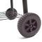 - Deux pieds équipés de roues (Ø 15 cm) facilitent grandement le déplacement et le rangement du barbecue.